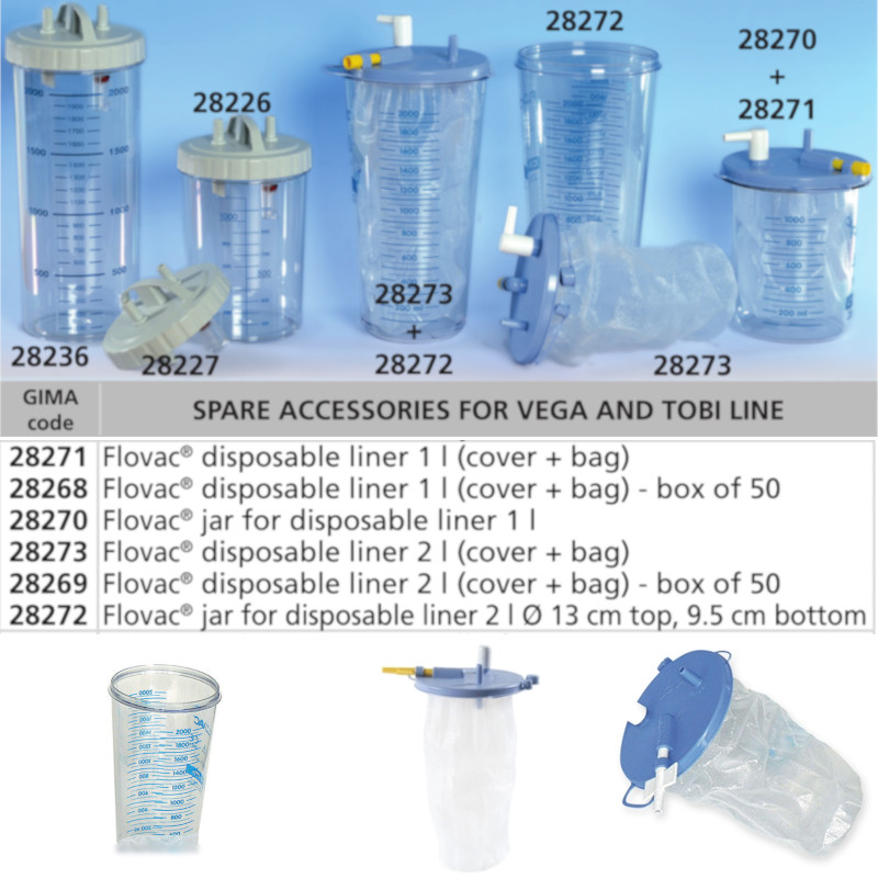 Gama completa de accesorii si consumabile pentru aspiratoare chirurgicale SuperVega, Vega si Tobi. Accesorii aspiratoare medicale concepute pentru siguranta, igiena si performanta optima în utilizare medicala.