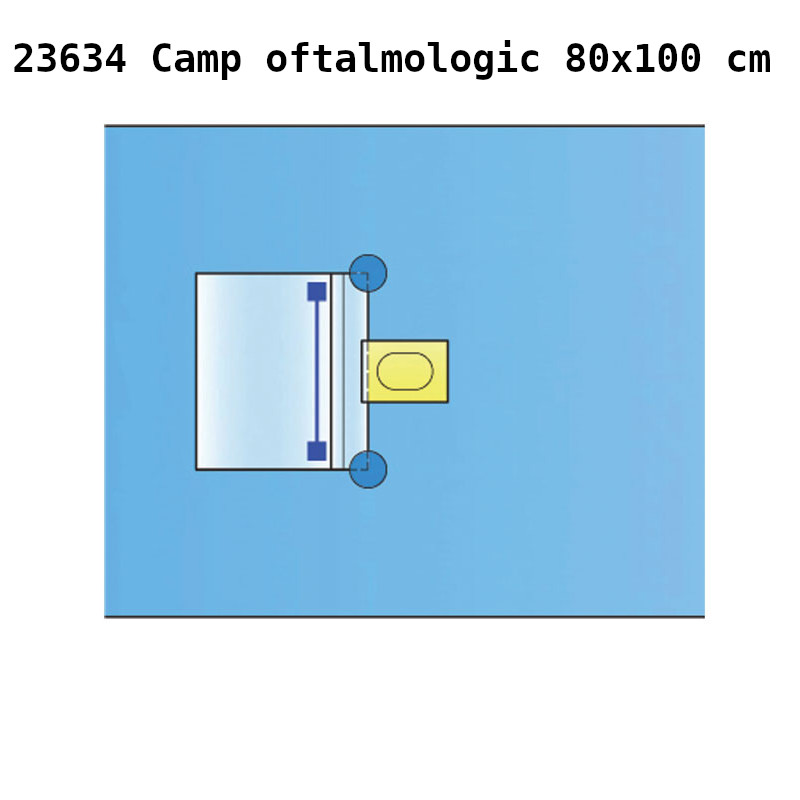 - 23634 Camp chirurgical oftalmologic 80 x 100 cm, cu orificiu 6 x 9 cm si punga simpla pentru fluide - cutie 40 buc.