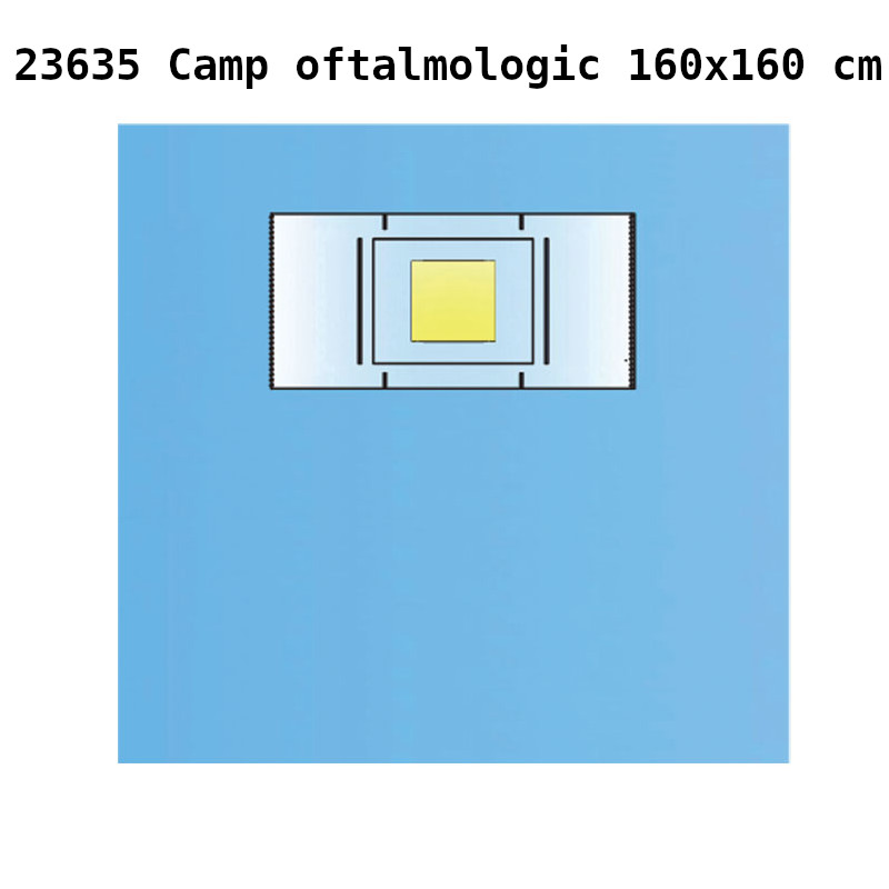 - 23635 Camp chirurgical oftalmologic 160 x 160 cm, cu orificiu 10 x 10 cm si punga dubla pentru fluide - cutie 15 buc.