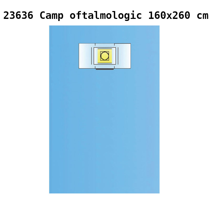 - 23636 Camp chirurgical oftalmologic 160 x 260 cm, cu orificiu Ø 11 cm, punga dubla 35 x 73 cm si bara adaptabila pentru sept nazal - cutie 10 buc.