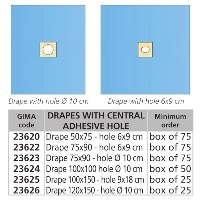 - Campuri chirurgicale sterile 50x75 cm, orificiu 6x9 cm - cutie 75 buc. (cod 23620)