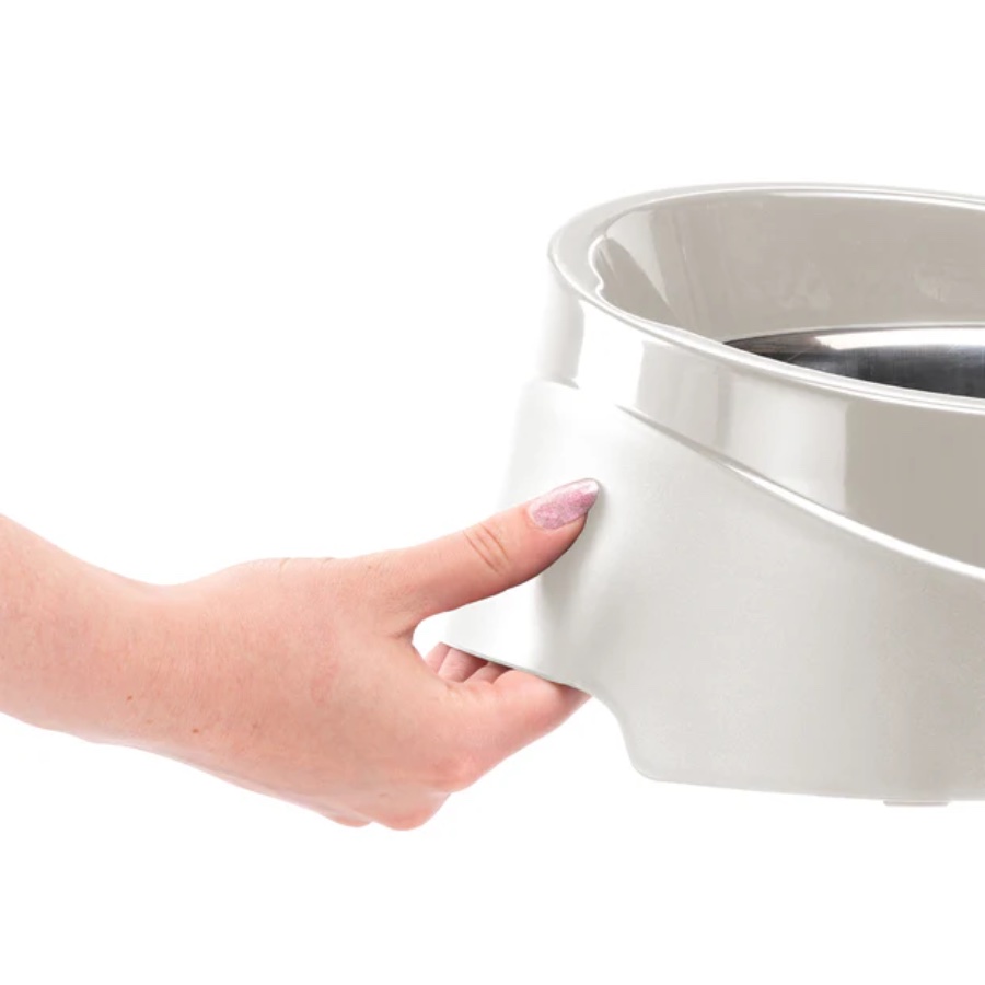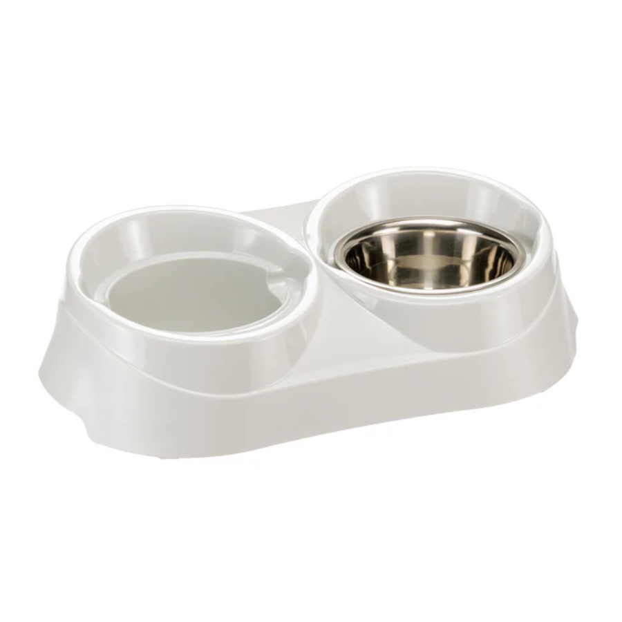 Duo Feed este bol dublu pentru hranire si apa, ideal pentru caini si pisici, oferind hrana si apa in mod igienic si sigur. Include boluri din otel inoxidabil Orion si suport din plastic cu maner conturat si picioruse antiderapante. Usor de curatat si intretinut, bolurile se pot scoate rapid din suport, iar marginea speciala previne varsarea hranei sau apei. Disponibil in trei dimensiuni (1, 1.7 si 3.6 litri) si eco-sustenabil, fabricat din materiale reciclate, Duo Feed combina functionalitate, siguranta si grija pentru mediu.