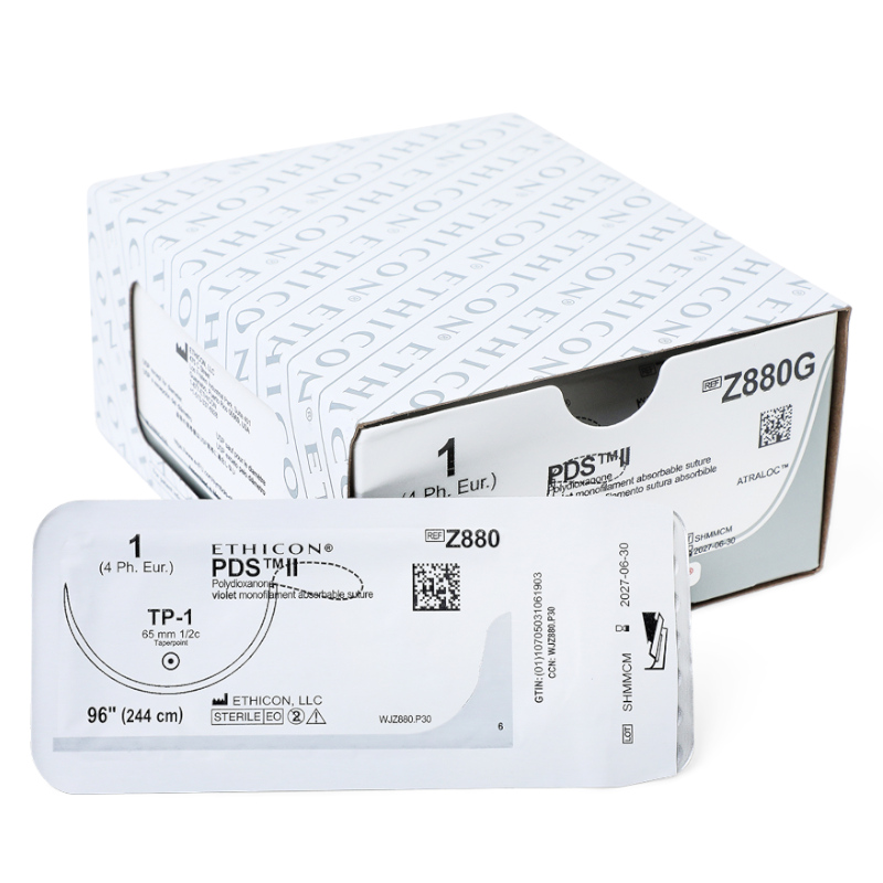 Fire de sutura resorbabile Ethicon™ PDS II cu ac sutura chirurgicala de înalta calitate Prime™, cutie 24 sau 36 fire de sutura cu ac. Firele de sutura resorbabile se descompun în organism pe masura ce vindecarea progreseaza, fire resorbabile durata de absorbtie totala 182–238 zile. Fire de sutura chirurgicale monofilament, Polydioxanone (PDS), sterile, ambalate individual, culoare violet. Suturile chirurgicale resorbabile sunt recomandate pentru tehnici de sutura chirurgicala în aproximarea generala a tesuturilor moi, inclusiv în tesutul cardiovascular pediatric, în microchirurgie si în chirurgia oftalmica. Aceste suturi sunt deosebit de utile în cazul în care combinatia dintre o sutura absorbabila si un suport extins al plagii (pana la sase saptamani) este de dorit. Fire resorbabile operatie Ethicon™ PDS II, alegerea perfecta pentru performanta si siguranta, ofera precizie si rezistenta ridicata suturilor chirurgicale.