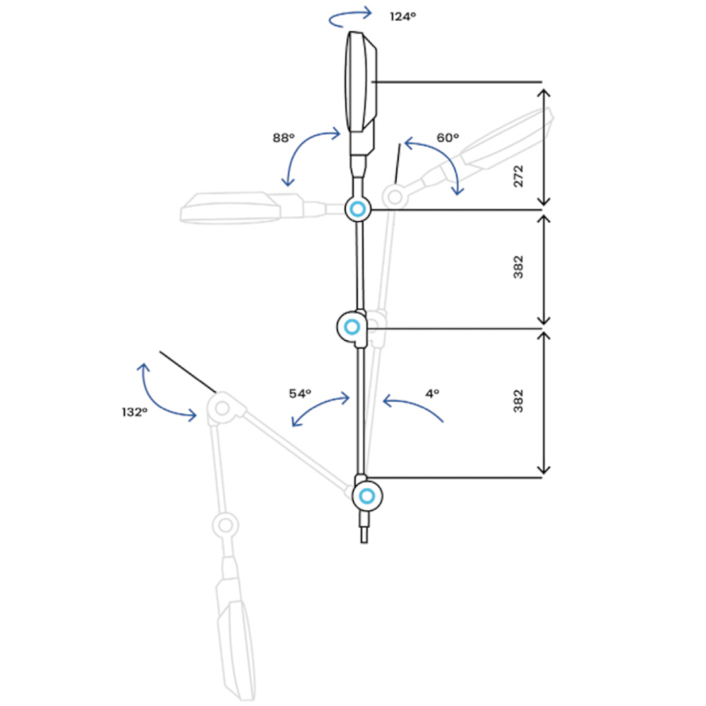 Lampa de examinare veterinara Alfa-flex® LED, design minimalist care asigura utilizarea si manevrarea usoara. Intensitatea luminii poate fi reglata prin intermediul butonului tactil de la 4% la 100%. Transformator integrat pentru o miscare mai usoara si lina a structurii bratului. Bratul articulat asigura o pozitionare mai usoara a luminii si este acoperit cu un învelis termocontractabil alb pentru curatare si dezinfectie mai usoara.