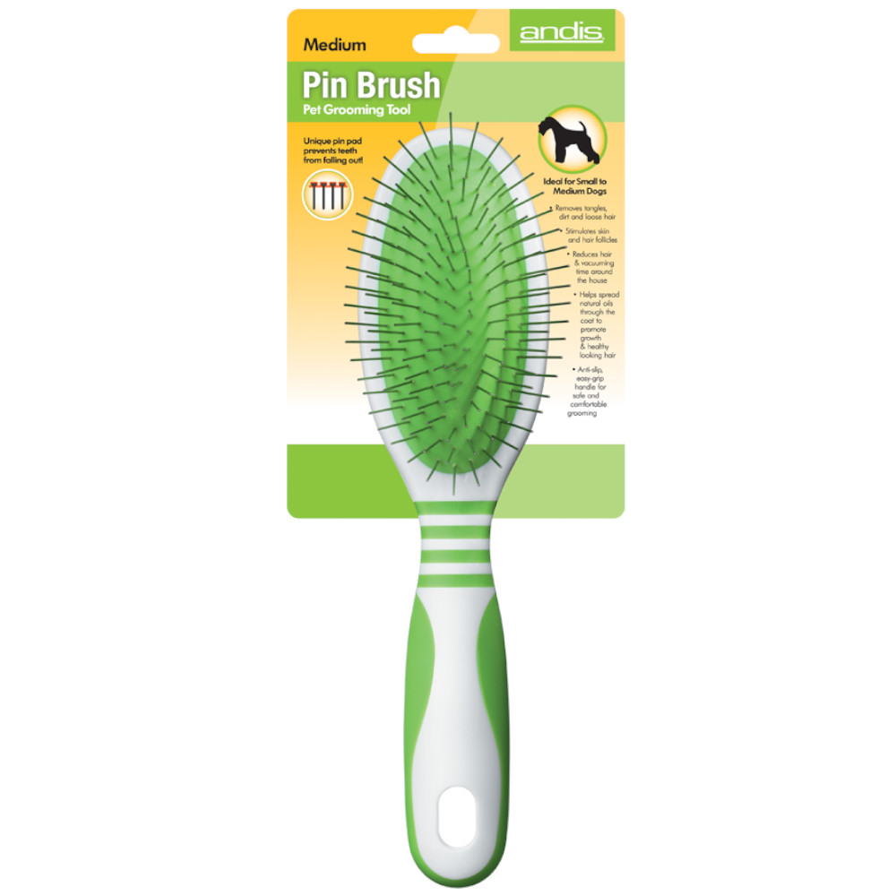 Perie profesionala pentru caini, maseaza si stimuleaza pielea, recomandata pentru intretinerea usoara a blanii cainilor cu par medium. Perie profesionala Andis®, elimina nodurile si îndeparteaza murdaria si firele de par moarte din blana animalelor de companie.