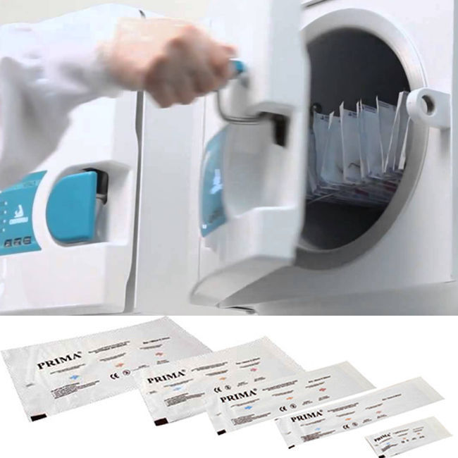 Pungi sterilizare autoclav autosigilante cu indicator individual de sterilizare, Autoclav - EO, pret per punga 100 buc. Pungi sterilizare dimensiuni: 60x100mm, 75x250mm. 90x250mm. 150x250mm. 190x330mm. 200x400mm 250x400mm, 300x400mm, 300x450mm, 300x500mm. 250x400mm, 300x500mm. Pungile de sterilizare cu durata mentinerii sterilitatii de doua luni de la sterilizare si sunt recomandate pentru utilizarea in salile de operatii, centre medicina de urgenta, ambulante, SMURD, spitale, clinici, cabinete individuale, etc.