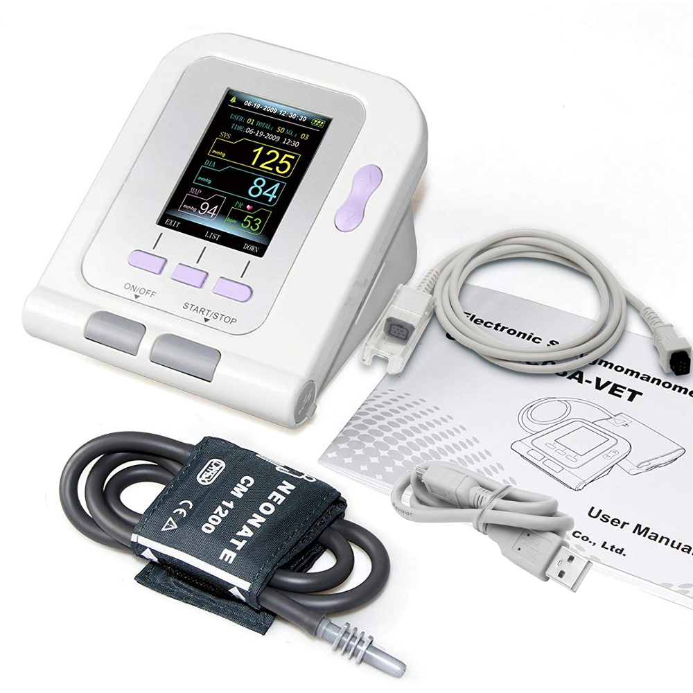 Tensiometru digital veterinar, masurare complet automata, afisaj LCD color 2.8 " de înalta definitie. Memorie interna pentru 100 grupuri de date, inclusiv data si ora, functie de alarma cu posibilitatea setarii limitelor de alarma in programul de monitorizare, program pentru selectarea a cinci dimensiuni de manseta: mica, mica / medie, medie, mare, X-mare, oprire automata.